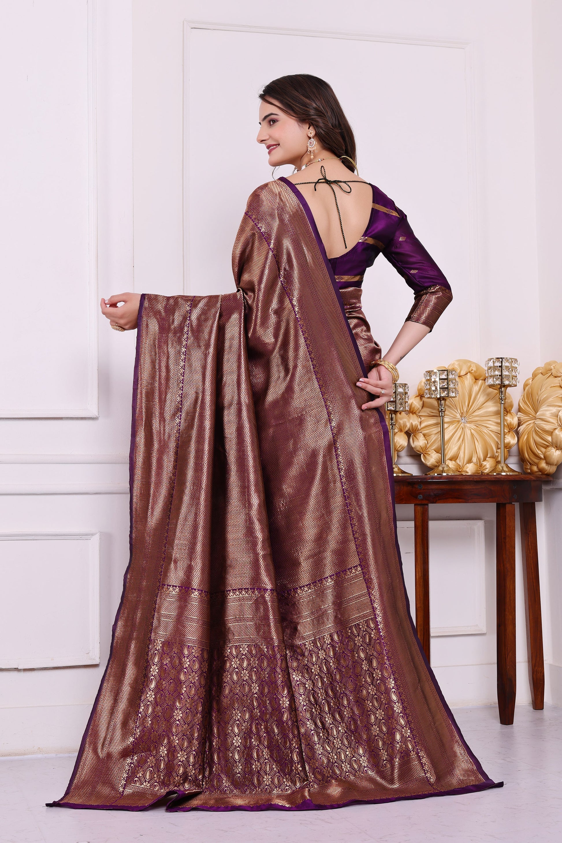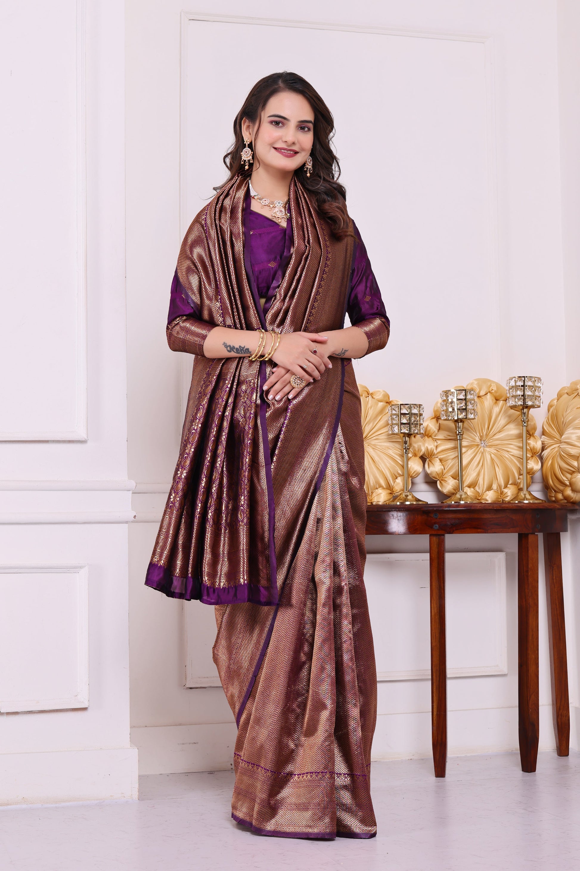 Aarohi Wine Banarasi Silk Saree