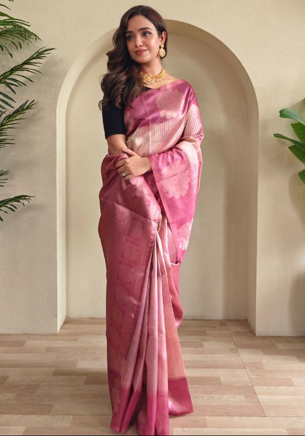 Amara – Pink Banarasi Soft Silk Saree with Floral Weave