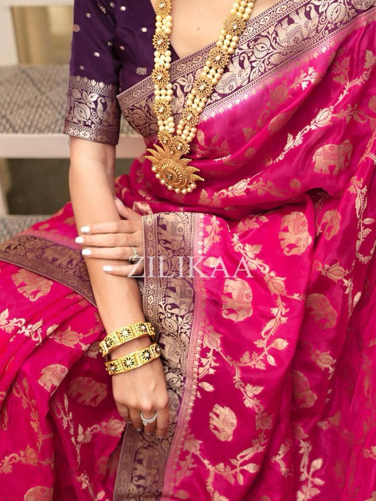 Anvitha – Dark Pink Banarasi Silk Saree with Zari Weaving